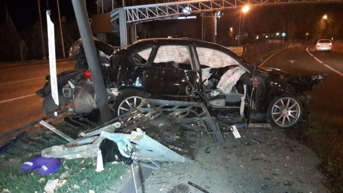 ДТП произошло по проспекту Аль-Фараби. По словам очевидцев, водитель Subaru не справился с управлением на затяжном повороте. Машину занесло, она разрушила три секции металлического ограждения и врезалась в столб.