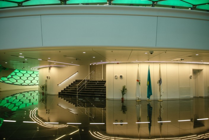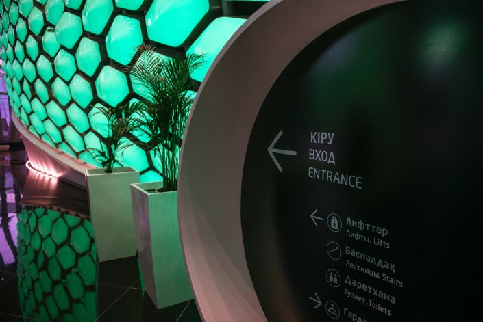 "...Сфера – это будет самое большое сферическое здание в мире диаметром 80 метров, высотой 100 метров. Сфера имеет восемь этажей. Каждый этаж будет показывать один из видов альтернативной энергии. Допустим, первый этаж – это гидроэнергетика, второй этаж – это энергия солнца, третий этаж – это энергия ветра, четвертый этаж – биоэнергетика, химическая энергетика. Все это остается как опытный образец для всех и, конечно, для нас, для казахстанцев", - ранее говорил Нурсултан Назарбаев.