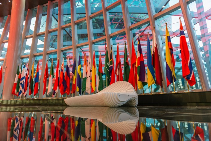 Флаги участников, чьи павильоны скоро будут работать на выставке. По данным АО НК "Астана ЭКСПО-2017", ожидается прибытие 310 тысяч иностранных пассажиров международными рейсами. К началу выставки профильное министерство пообещало запустить дополнительные авиарейсы, в том числе новых авиаперевозчиков Польши, Венгрии, Финляндии, Китая по четырем маршрутам с общей частотой полетов 11 рейсов в неделю.