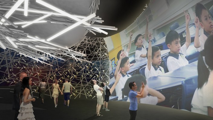 В общей платформе гости смогут отдохнуть, эту зону организаторы выделили "для размышления". На данном участке будут также представлены снимки сингапурских компаний и вращающиеся экспонаты.