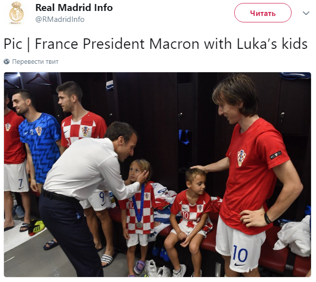 Эмманюэль Макрон с детьми хорватского футболиста Луки Модрича.