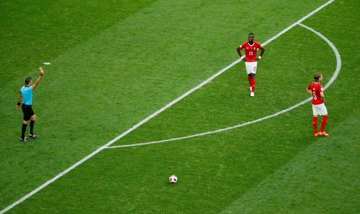 Примечательно, что на 4 минуте добавленного ко второму тайму времени, главный судья встречи воспользовался возможностью просмотреть видеоповтор опасного момента у штрафной швейцарцев. Швейцарский защитник совершил фол последней надежды и прервал спринт шведского нападающего, за что и получил красную карточку. Система VAR показала, что нарушение было совершено за пределами штрафной.