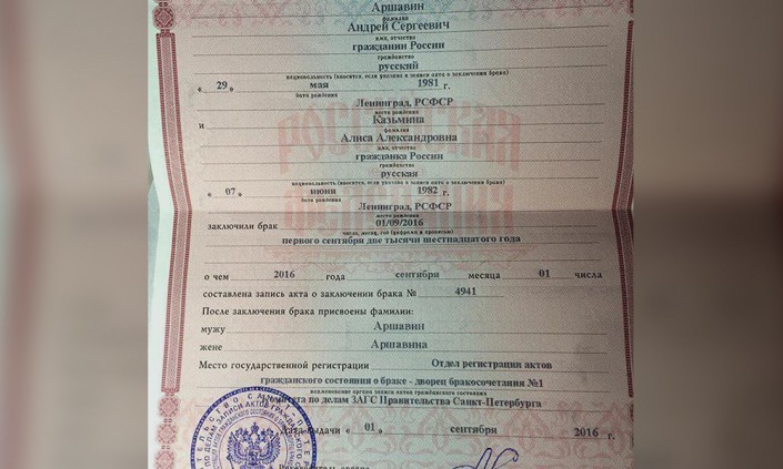 Для Аршавина это первые официально зарегистрированные отношения. Ранее спортсмен состоял лишь в гражданском браке Юлией Барановской. Пара жила вместе девять лет, за это время у них родились трое детей. В 2012 году Аршавин и Барановская расстались.