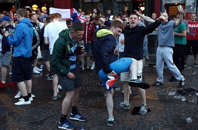 Во время стычки английских и российских футбольных болельщиков во французском Лилле перед матчем чемпионата Европы между сборными России и Словакии английские фанаты вместе с фанатами Уэльса скандировали в адрес россиян оскорбительные кричалки: "f...k off Russia we England and Wales". Очевидцы инцидента выложили видео в соцсети и YouTube.