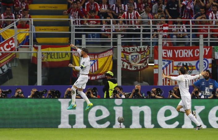 Однако своим шансом подопечные Диего Симеоне не воспользовались. Первый гол в этой встрече на 15-й минуте забил капитан "Галактикос" Серхио Рамос. Защитник буквально заковырял мяч между ног Яна Облака после штрафного Тони Крооса.