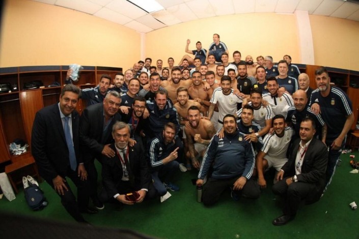 Футболисты сборной Аргентины публикуют на своих страницах в Instagram фото и видео из раздевалки сразу после победы над сборной Эквадора, благодаря которой "альбиселесте" удалось попасть в финальную часть чемпионата мира-2018 в России.