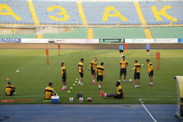 Ниже - фотографии тренировок "Кайрата" и "Бордо" на Центральном стадионе Алматы.