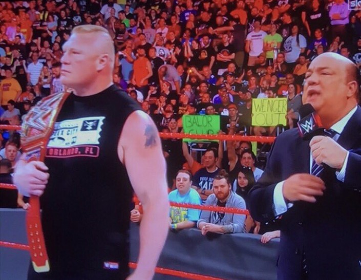 Среди держащих плакат Wenger Out можно заметить известного комментатора Евгения Акманова и ведущего программы "Наш футбол.kz" Петра Воликова.
