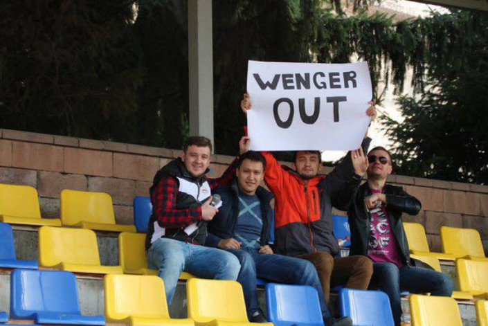 Это уже не первое появление плаката с надписью Wenger Out в Казахстане. Ранее его продемонстрировали на одной из свадеб.