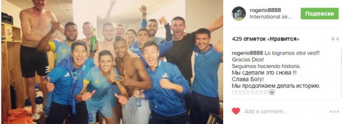 Капитан "Астаны" в матче против белорусского БАТЭ Рохер Каньяс после выхода казахстанской команды в групповой этап Лиги Европы опубликовал пост на своей странице в Instagram, сообщает Vesti.kz.