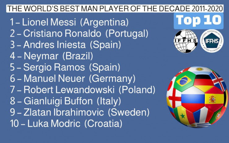 Рейтинг игроков за период с 2011 по 2020 годы был составлен по итогам голосования среди представителей 150 членов федерации.