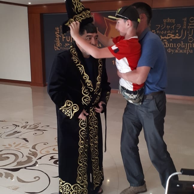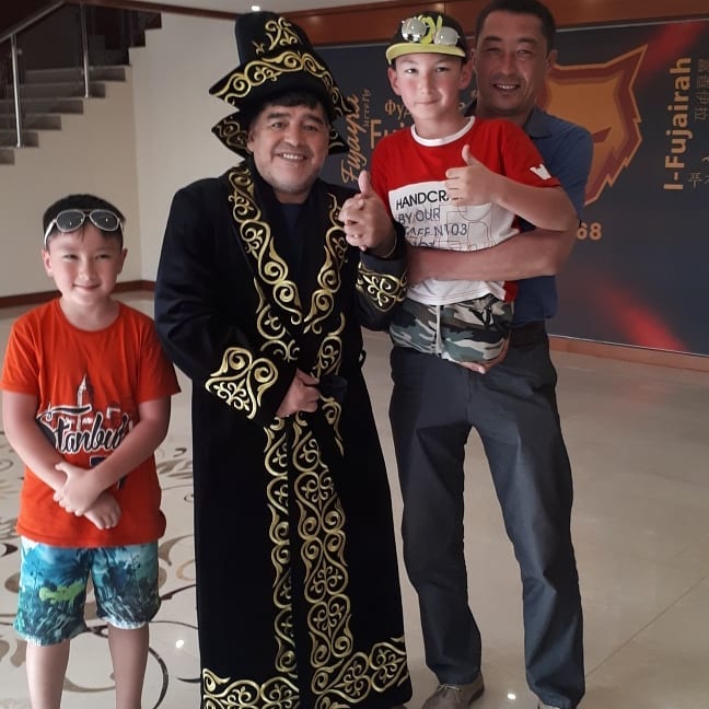 Семья родившегося без ног казахстанского мальчика Али Турганбекова подарила казахский чапан легенде мирового футбола Диего Марадоне. Али и Марадона встретились в ОАЭ, где аргентинец работает главным тренером клуба "Аль-Фуджайра".