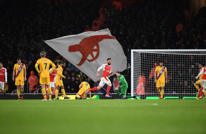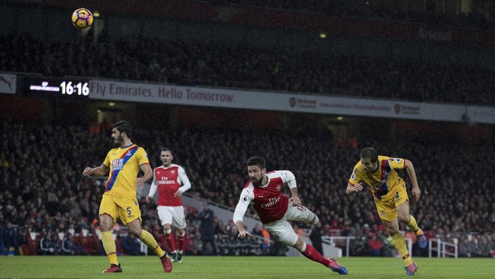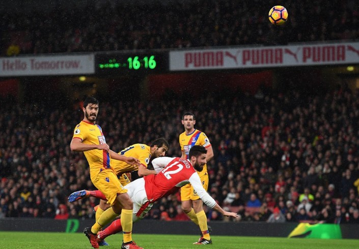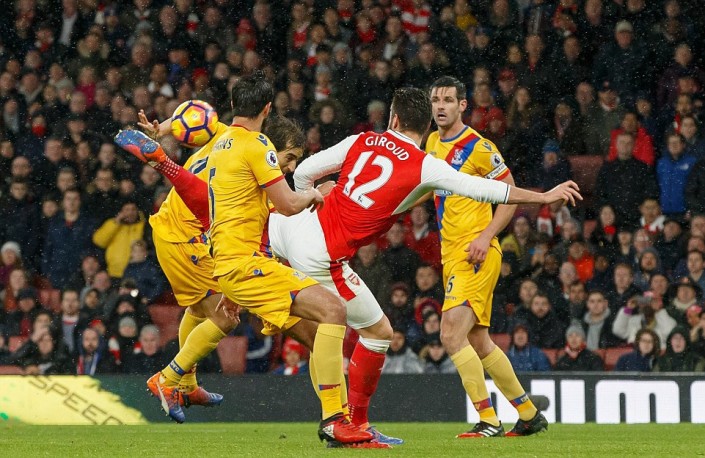 Французский нападающий лондонского клуба "Арсенал" Оливье Жиру забил гол "ударом скорпиона" во время домашнего матча чемпионата Англии против "Кристал Пэлас".