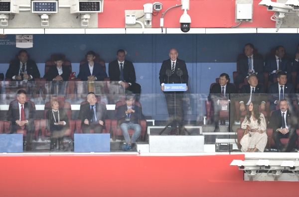 Пресс-служба Президента Казахстана Нурсултана Назарбаева опубликовала фотографию Главы государства, который 14 июня принял участие в церемонии открытия чемпионата мира по футболу 2018 года на стадионе "Лужники" в Москве.