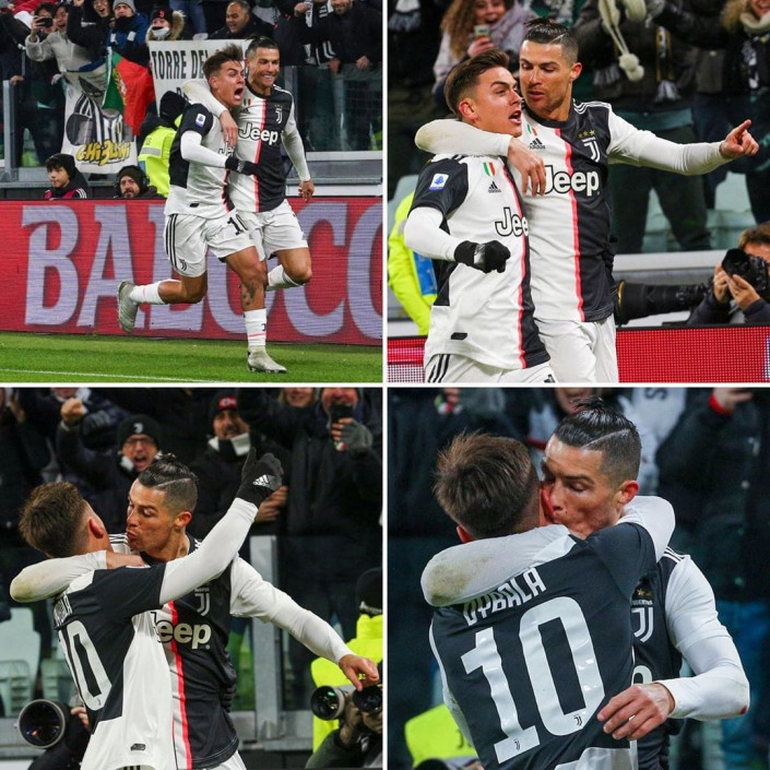 Нападающий туринского "Ювентуса" Криштиану Роналду и его партнер по команде Пауло Дибала поцеловались, празднуя гол в ворота "Пармы", сообщает Eurosport.