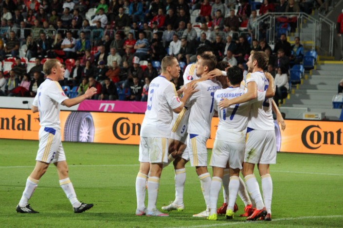 Встреча состоялась в городе Пльзень на стадионе "Дусан Арена" и завершилась со счетом 2:1 в пользу сборной Чехии. Хозяева, ведомые домашними болельщиками, со стартового свистка понеслись в атаку. Уже на второй минуте Лафата пробил по воротам Стаса Покатилова, но его удар оказался неточным. После этого чехи предприняли еще пару атак, но безуспешно. Сборная Казахстана, выдержав натиск соперника, сумела организовать атаку и на 21-й минуте вышла вперед. Автором гола стал защитник "Актобе" Юрий Логвиненко, забивший головой после фланговой подачи в исполнении капитана "Кайрата" Бауыржана Исламхана.