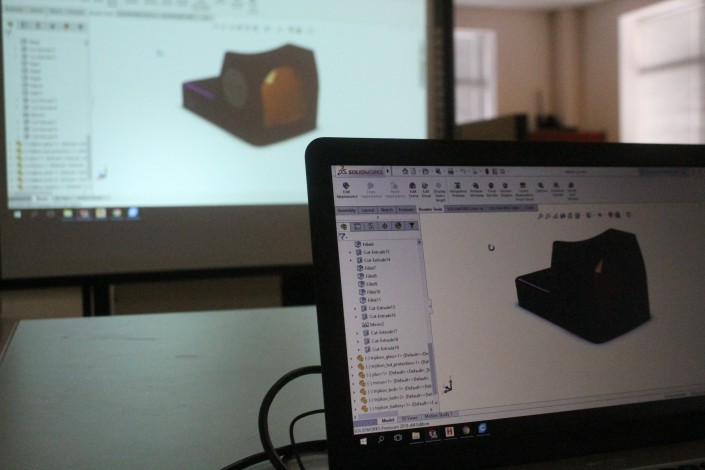 "Все схемы, все детали, от линз до корпусов и креплений прицелов, мы конструируем сами. Сначала работаем над чертежом, далее "загоняем" проект в виртуальную программу испытаний. Затем собираем пробный вариант на 3D-принтере", - рассказывает один из сотрудников КБ.
