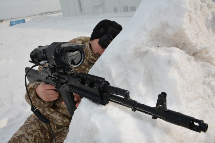 В качестве примера полезности электронной начинки представитель предприятия привел систему передачи изображения с прицела на наглазный монитор солдата, который позволяет стрелку вести огонь из укрытия, не попадая в поле зрения потенциального противника.