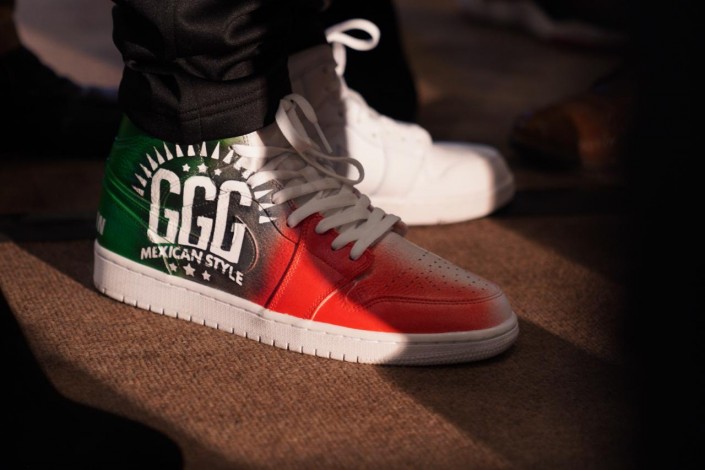 Особое внимание нашего фотографа привлекли кеды Геннадия Головкина, в которых он был на пресс-конференции.