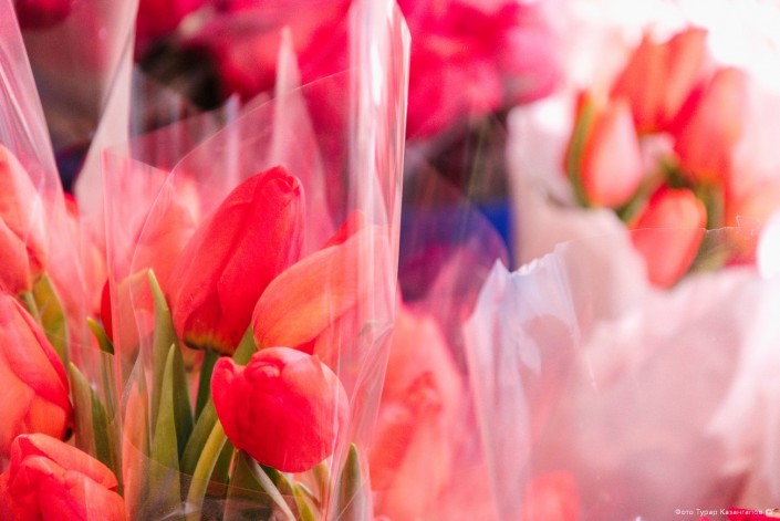 "С первых дней марта начинаем подготовку. Начиная с 6 марта мы работаем круглосуточно, но пик работы, конечно, всегда приходится на 8 марта", - описывают свои будни продавцы цветов.