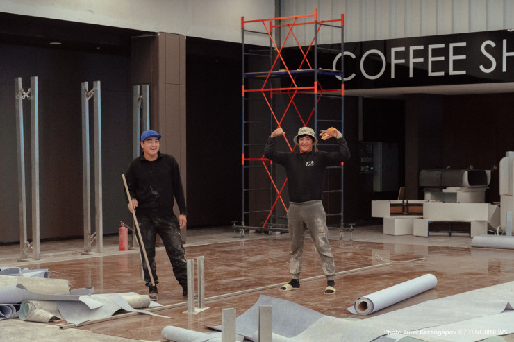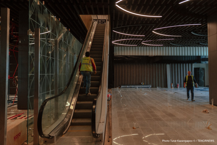 Сейчас внутри там ведут отделочные работы, крепят надпись и готовят к монтажу символику Казахстана.