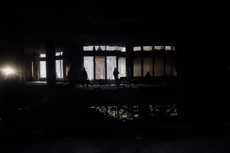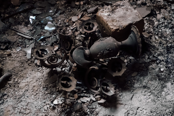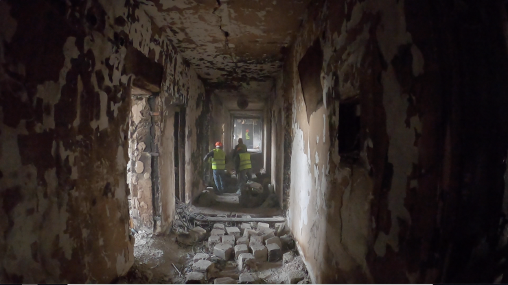 В здании везде очень темно. Покрытые копотью стены - как немые свидетели зверского погрома, что происходил внутри 5-6 января.