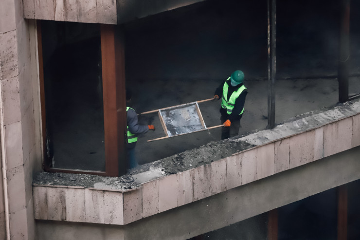 Акимат Алматы после захвата и пожара. Что осталось внутри? Фото:Алихан Сариев