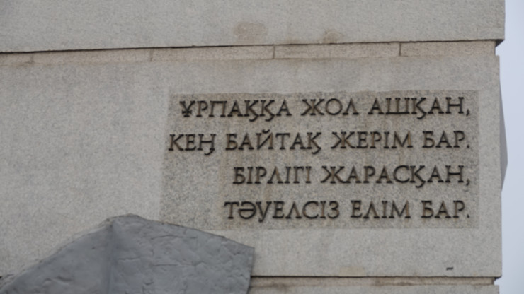 Ал монументтің ең төменгі тұсындағы мемориал тақтайға Тұңғыш Президенттің ант беру кезіндегі Ата заңға қойған қолының тaңбасы мен сөзі түсірілген. Тас тақтаның бір тұсында Нұрсұлтан Назарбаевтың және өзге де құлпытастарға белгілі тұлғалардың ғибратты сөздері ойылып жазылған.