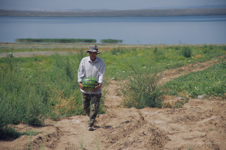 "На одном и том же месте арбузы выращивать нельзя, земля должна "отдохнуть" не меньше пяти лет. Поэтому каждый год меняем участок. Лучше всего арбузам подходит песчаная почва. В этой местности, на берегу водохранилища, она именно такая. Поливаем их каждые два-три дня", - делится знаниями Аян.