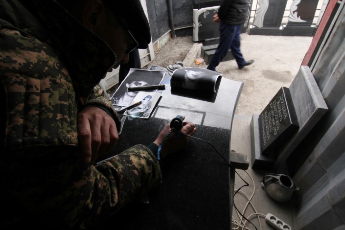 Такой цех по изготовлению памятников на этой улице не один. Подобные фирмы здесь чуть ли не на каждом шагу. Сами бизнесмены называют разные цифры: говорят, в одном квартале работают от 15 до 30 предприятий.