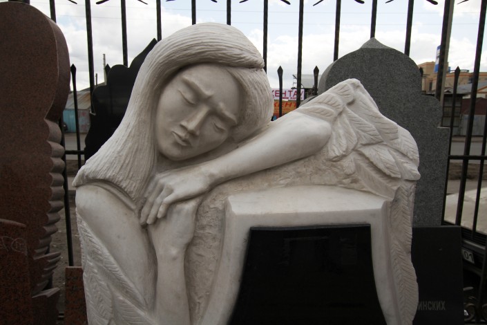 "Скульптура ангел, такие заказывают в основном для детей", - говорит молодой человек по имени Аман. У них с братом в этом районе сразу две мастерские. Одной заведует он.