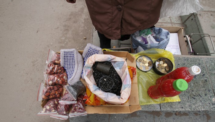 "Когда-то я работала на заводе. А выходить с торговлей начала после того, как заводы позакрывались, пенсия была маленькая, за квартиру платила, а теперь не могу отвыкнуть", - рассказывает она.