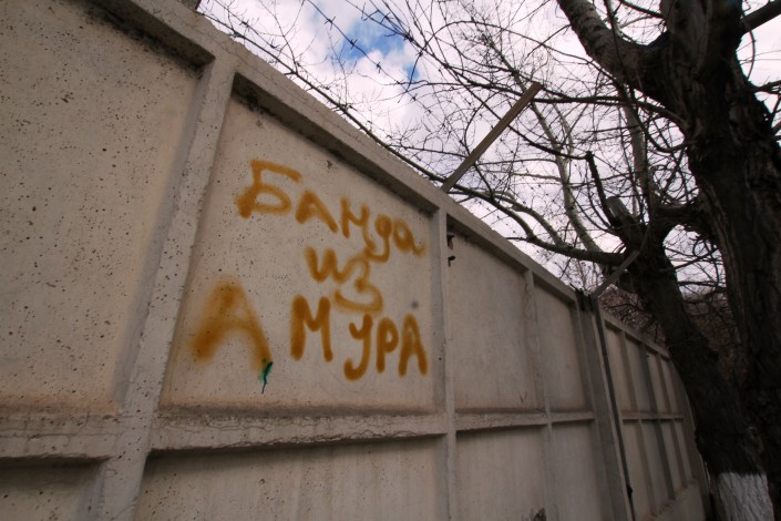 "Стоянка только для клиентов. Остальным - прокол колес", - говорится в объявлении, которое можно заметить на улице Сейфуллина в Астане. Этот текст и сам по себе звучит весьма строго, но еще больший антураж такому заявлению придает тот факт, что размещено оно на могильной плите. А вообще улица Сакена Сейфуллина выглядит вполне себе дружелюбной и даже уютной, по крайней мере в тех местах, где она пересекается с проспектом Республики, или улицей Бейбитшилик, или проспектом Победы и еще дальше. Это такой мирный, обжитый старый город. И посреди всего этого спокойствия вдруг бетонный забор, колючая проволока и надпись: "Банда из Амура". В этом месте наверняка многие вспомнят знаменитую песню про "Мурку", которая так и начинается: "Прибыла в Одессу банда из Амура…". Ренат Ташкинбаев прогулялся по столичной улице Сейфуллина и обнаружил там весьма необычный квартал.