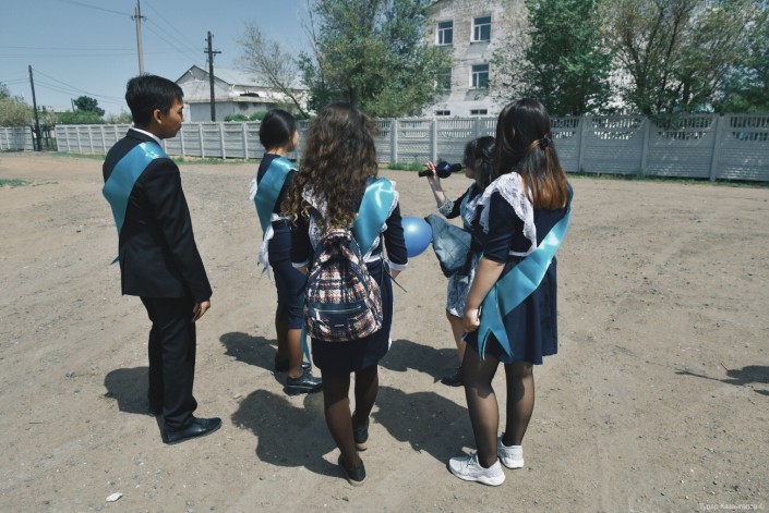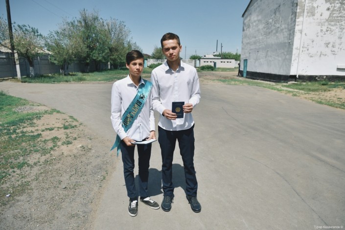 Эти ребята не одиннадцатиклассники, они закончили только девять классов. Часть из них продолжит учиться в школе, другая часть решила идти в колледж. Среди вторых и Рауан - наверное, один из самых веселых учеников школы. Это он чуть позже со своими одноклассницами будет петь песни на улице и в том числе исполнит тот самый трек Скриптонита про Ленинский.