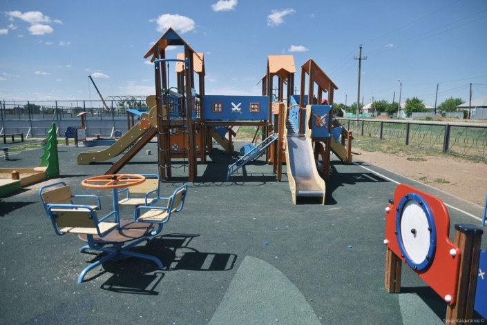 "А вон, видите, строится еще современный ФОК (физкультурно-оздоровительный комплекс)", - показывает аким, прибавляя, что в поселке уже работает школа дзюдо.