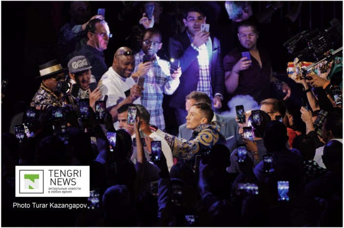 Головкин как всегда был верен своей традиции и вышел в казахском национальном чапане.