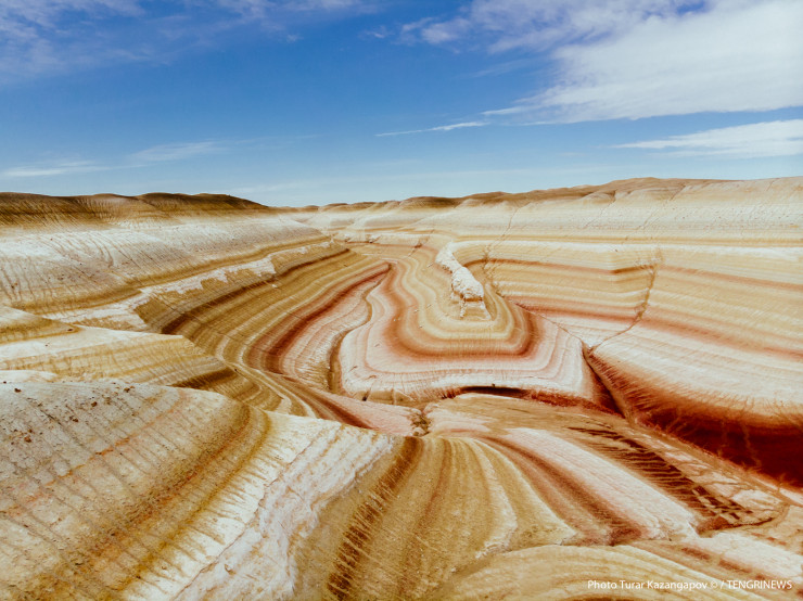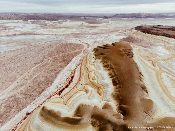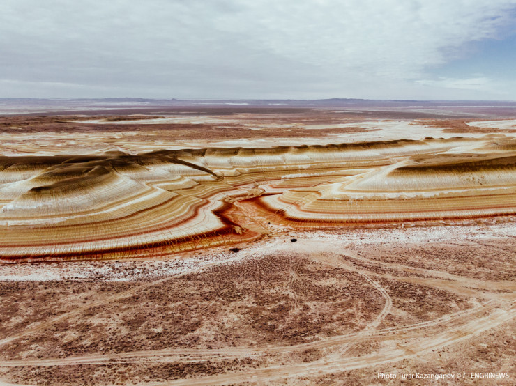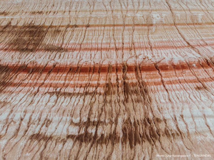 "Пожалуйста, не называйте это место тирамису", - чуть позже скажет нам житель Актау, когда мы будем ему рассказывать про горы с причудливыми цветами, состоящие как будто из разных слоев.