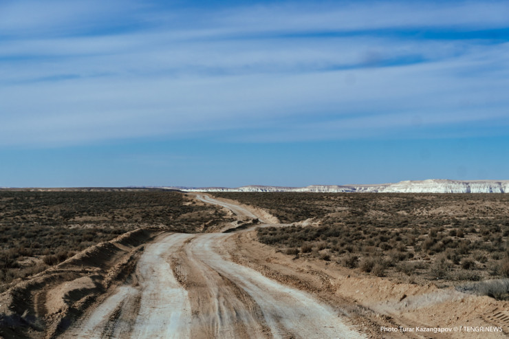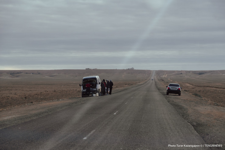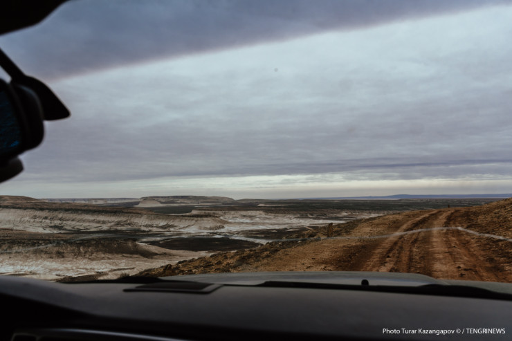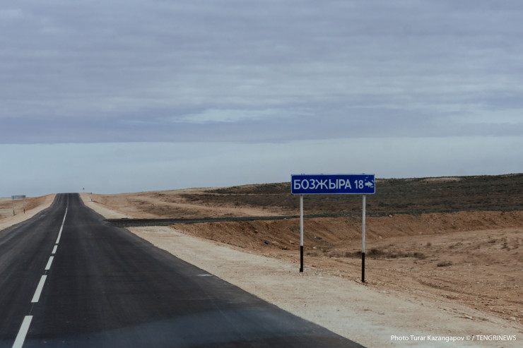О зиме мы сразу же забыли, как только выехали в сторону города Жанаозена, дорога на Бозжыру лежит через этот населенный пункт. Когда в этом месте днем светит солнце, то северному жителю кажется, что пришла весна, и временами можно даже ходить без шапки. Но для жанаозенцев, конечно, настоящая весна наступит позже.