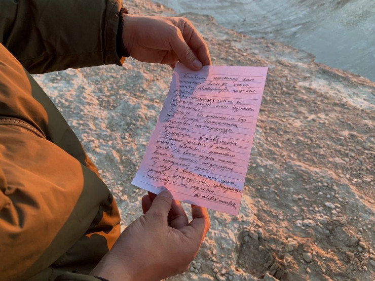 Мы покидали Бозжыру и вдруг на вершине заметили лист бумаги. Это было послание.