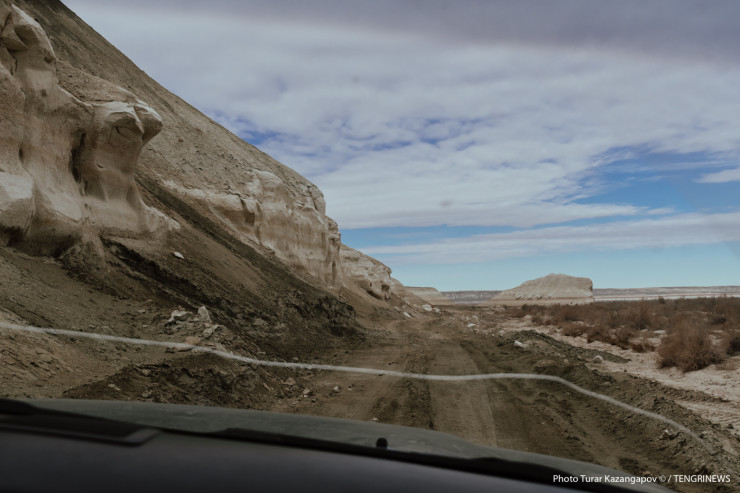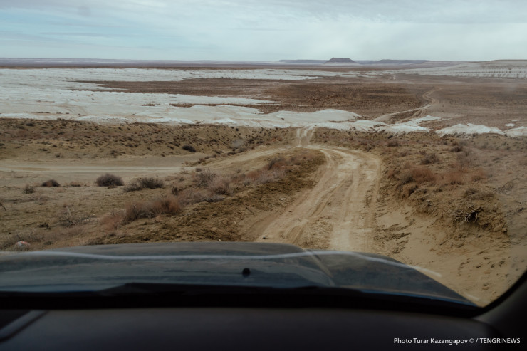 Мы хотели отправиться к, так скажем, модной горе сразу же. Но знающие люди, которые не раз объезжали урочище на внедорожнике, предостерегли нас: в той местности прошел дождь и машина может просто не пройти. Поэтому нам пришлось провести два дня в Жанаозене, чтобы дождаться идеальных условий (подробнее о том, как живут люди в Жанаозене, читайте в одном из следующих репортажей).