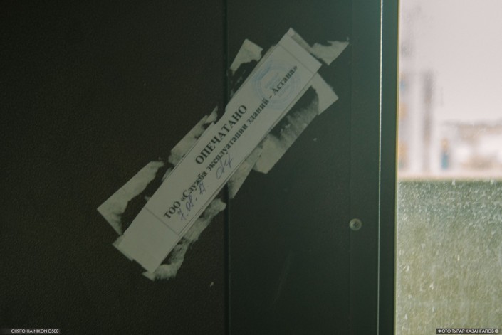 Этот дом расположен в одном из многолюдных мест - на набережной реки Есиль. Чтобы не допустить прохода туда посторонних, местному КСК пришлось расклеить специальное объявление.