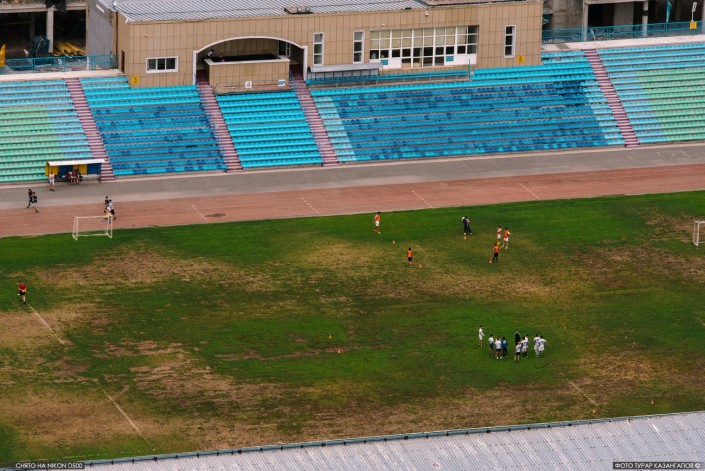 Футбольное поле стадиона имени Кажимукана Мунайтпасова.