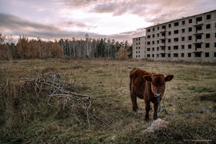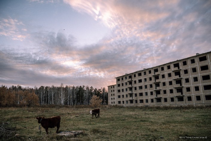 Рядом с пустующими коробками пасется скот. Как рассказал аким, в советское время эти дома поддерживало одно из предприятий Степногорска.