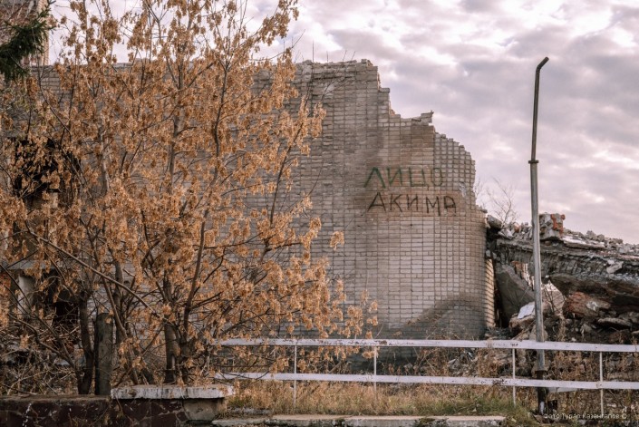 На развалинах виднеется надпись "Лицо акима".