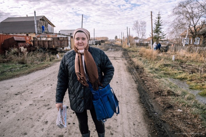Через всю эту грязь к адресатам пробирается местный почтальон. Поселок она обходит пешком. Сегодня нужно занести жителям несколько новых писем и стопку газет.