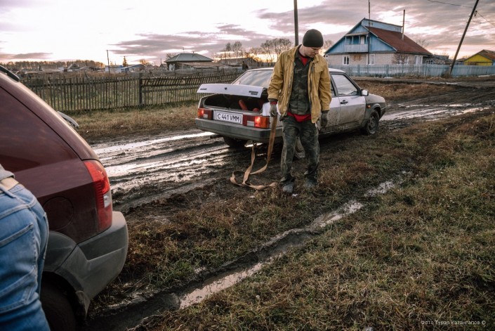 "Помочь?" - предложил отзывчивый парень и через пару минут на своем авто вызволил нас из трясины.