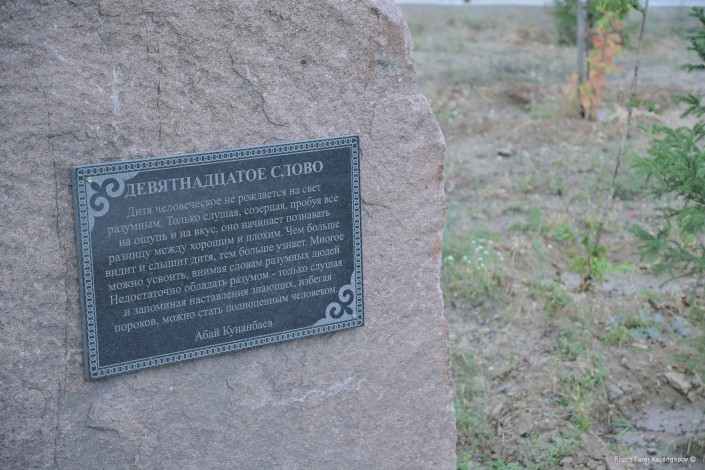 На камне рядом с памятником мы увидели табличку с мыслями Абая о том, как стать полноценным человеком.