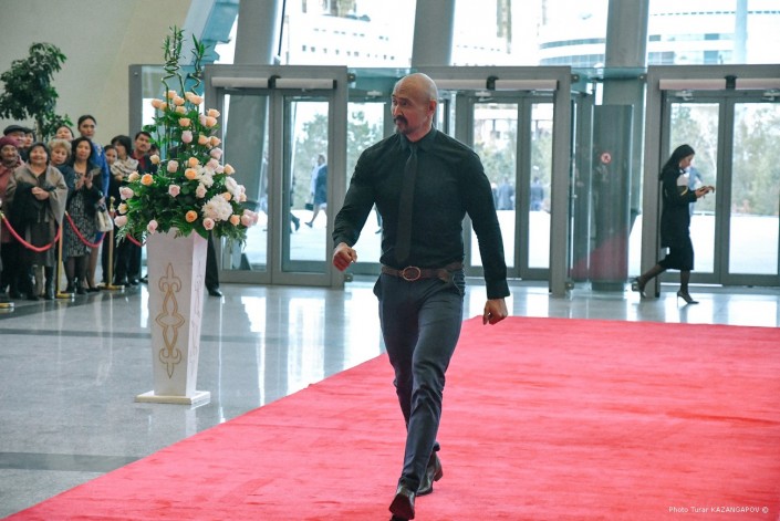 После выхода Акана Сатаева на красную дорожку ведущие пригласили всю команду, которая работала над фильмом.