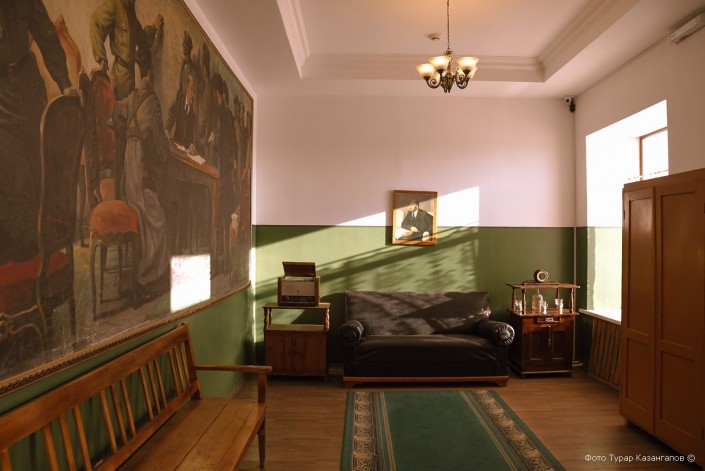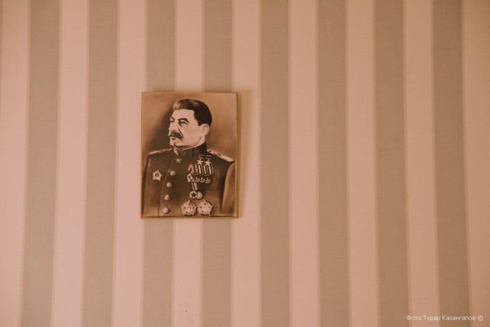 Портрет Сталина висит и в кабинете управляющего лагерями Карлага. В отличие от подвала этого здания, в котором настоящие камеры никогда не располагались, а был лишь архив, это место в точности такое, каким было в прошлом веке.