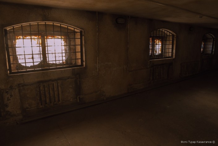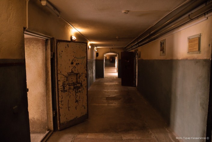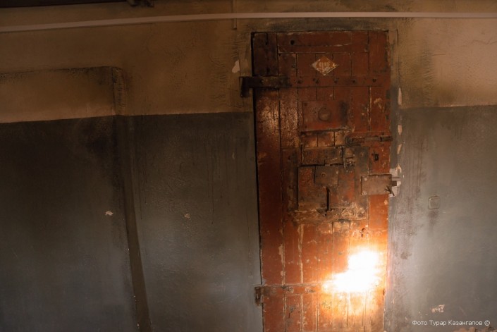 Мы спускаемся в цокольный этаж. Экскурсовод обращает наше внимание на массивные двери. "Это настоящие двери, привезенные из учреждений бывшего Карлага", - говорит работник музея.
